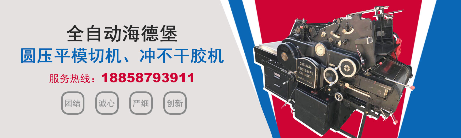 瑞安市恒柯機械廠(www.wzhkjx_com.aeplfw.cn)是國內專業制造銷售全自動模切機,全自動燙金機,圓壓平模切機,圓壓平燙金機,滾筒燙金機,沖不干膠機,海德堡凸印機.銷售的產品系列規格齊全,產品具有速度快,壓力均勻,套印準確等特點。